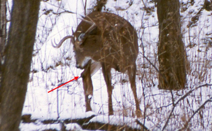 Soon after gaining a safe distance following a harrowing encounter with a hunter or large predator, a bounding whitetail will generally pull up to settle its nerves, assess its back trail to determine whether or not it is being pursued or stalked and lick its tarsal tufts to halt further emissions of the ammonia-like odor released into the air while it was greatly alarmed, thus making it more difficult for a rapidly trailing predator to keep to its trail via scent alone.